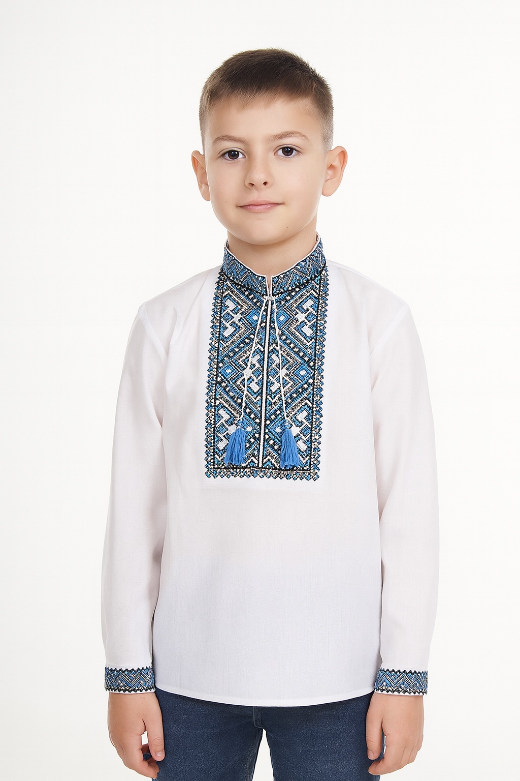 Сорочка -вишиванка арт.9906 🌈 білий з блакитним 6-12 років