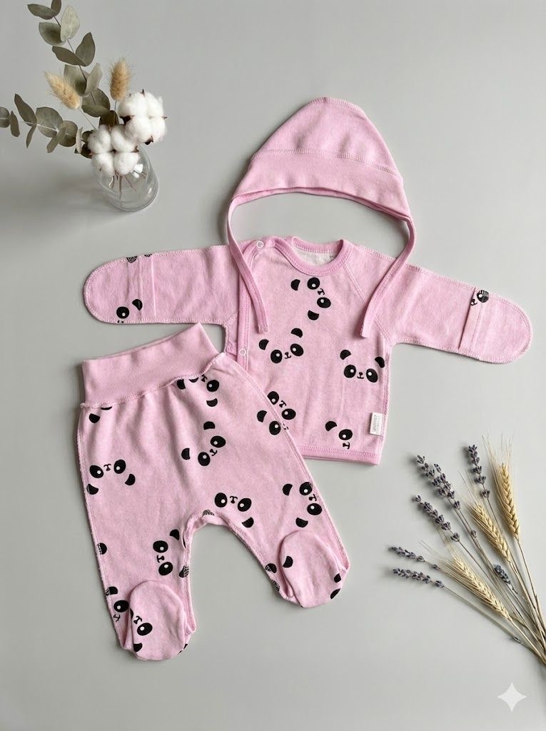✅ комплект для немовлят з повзунами з широким, мʼяким поясом, розпашонка на кнопках із закритими ручками та чепчик