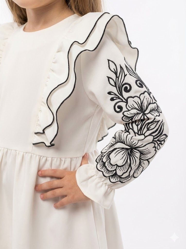 ✅ актуальне плаття-вишиванка в трендовому стилі «бохо» з рюшами, по спинці на блискавці, машинна вишивка гладдю